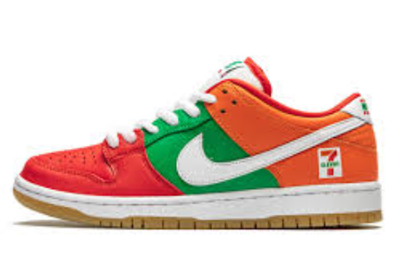 Whether you collect sneakers or are simply looking for a statement piece to elevate your street style, the 7-Eleven x Nike Dunk Low SB Orange Peel/Pine Green-University Red is a rare find that effortlessly combines style and functionality. Don’t miss out on this exclusive collaboration – get yours today and stand out from the crowd with these unique kicks.