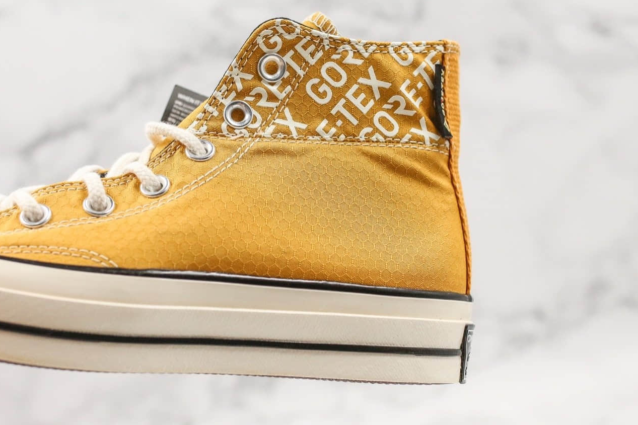 In summary, the Converse Gore-Tex x Chuck 70 Hi ‘Wheat’ is a durable and stylish shoe that combines the iconic Chuck 70 silhouette with the waterproof and breathable Gore-Tex technology. With its premium materials and all-weather performance, this shoe is perfect for those who value both fashion and functionality.