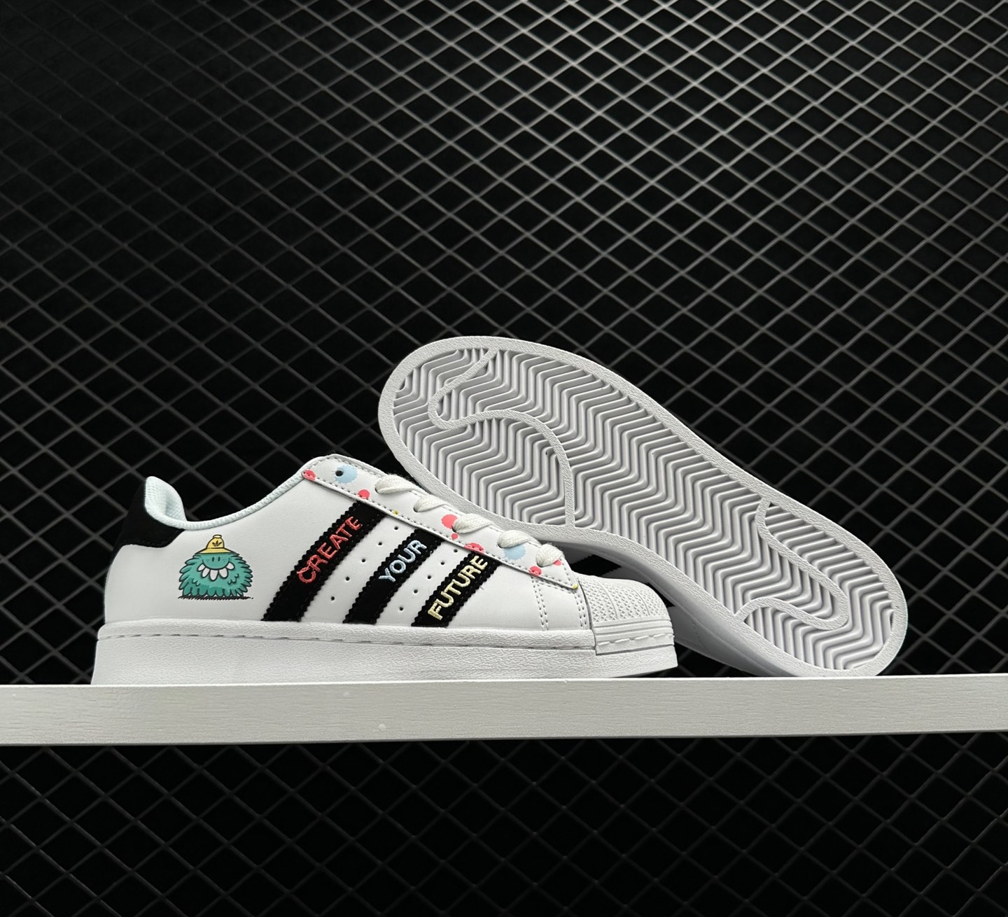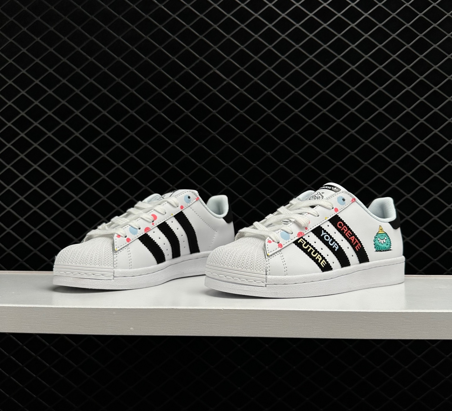 Elevate your child’s style with the Adidas Kevin Lyons x Superstar Big Kids ‘Create Your Future’ H03946. Combining artistic elements with comfort and durability, these sneakers are a perfect choice for young ones who want to make a fashion statement. Get ready to create a stylish future with these standout sneakers.