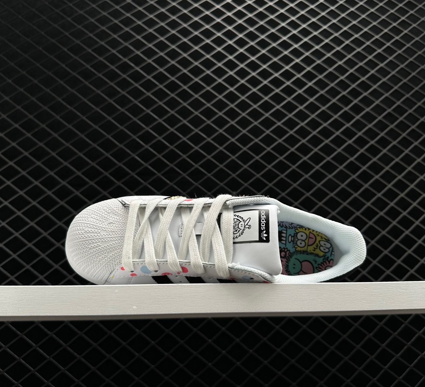 1. Artistic Design: The collaboration with Kevin Lyons brings a fresh and vibrant artistic touch to the classic Superstar silhouette. The shoe is adorned with eye-catching graphics that inspire creativity and individuality.