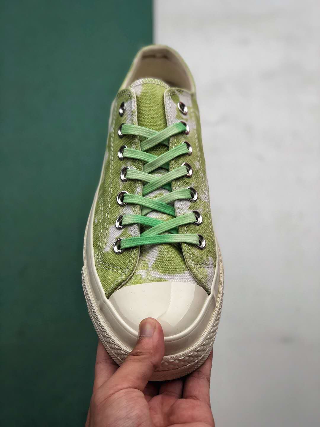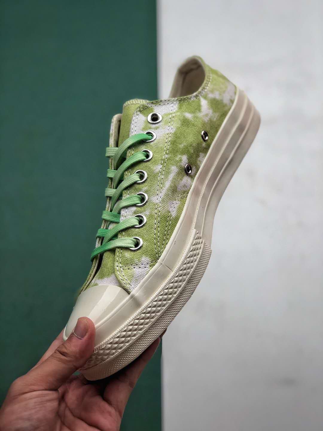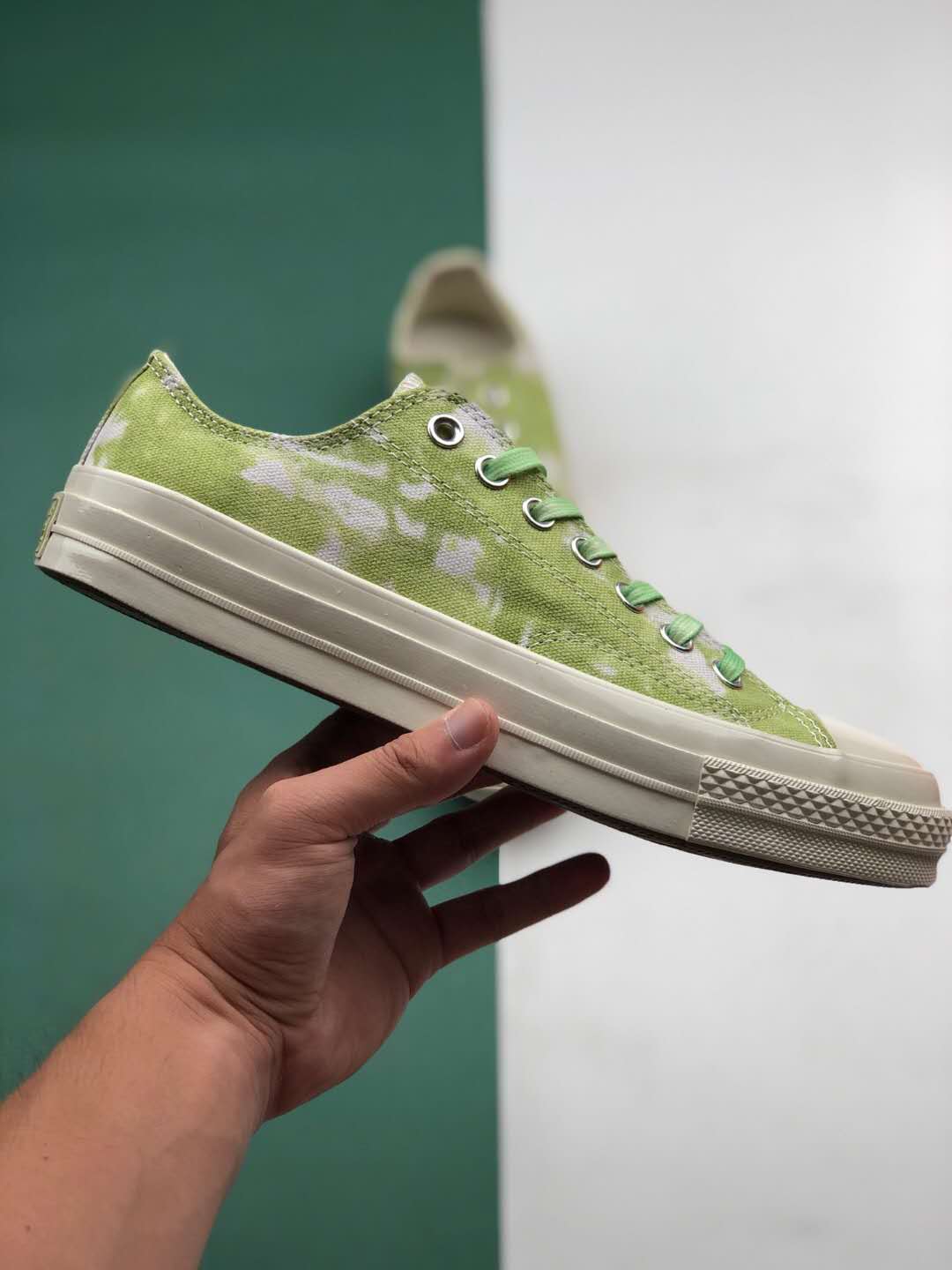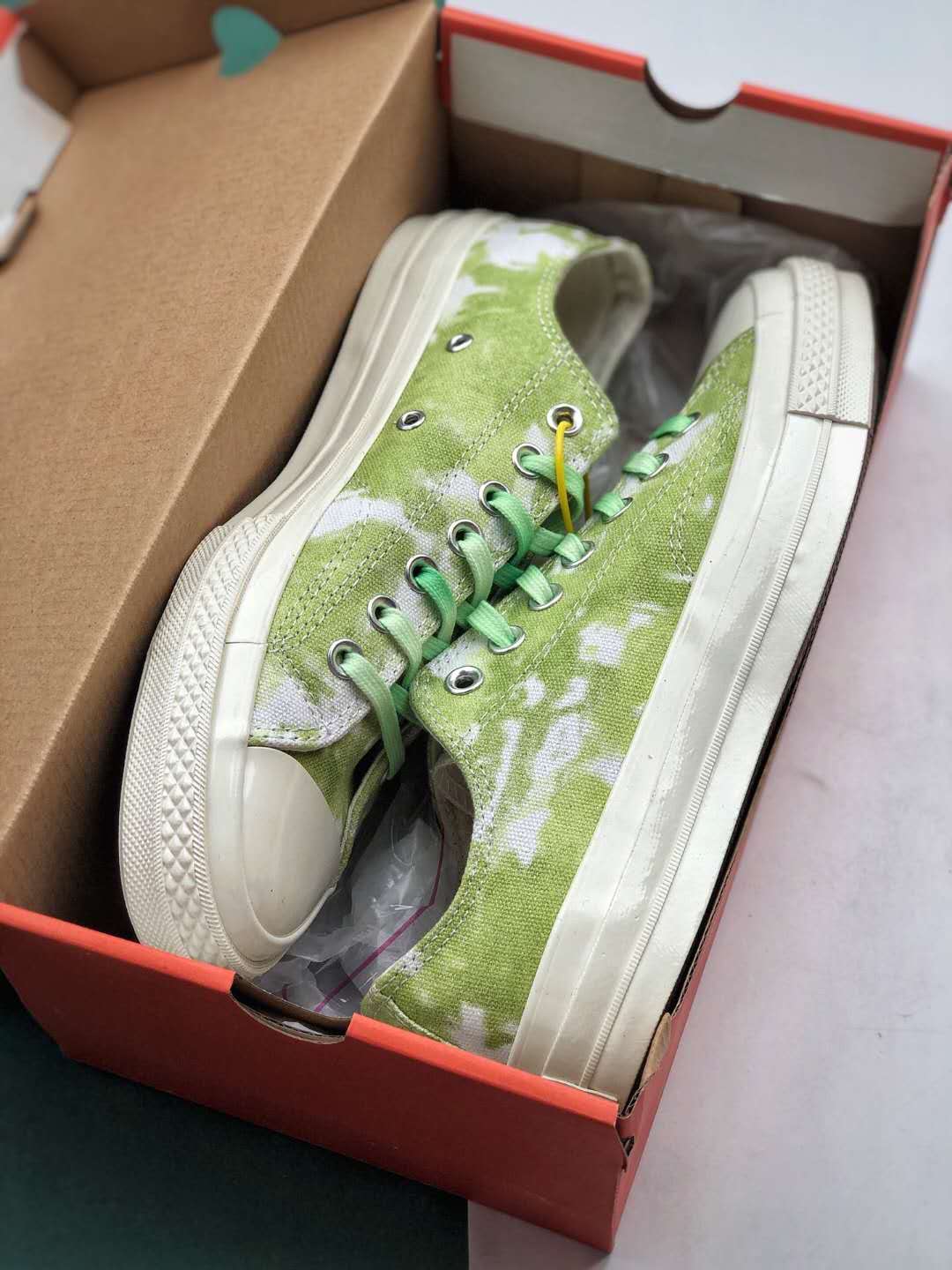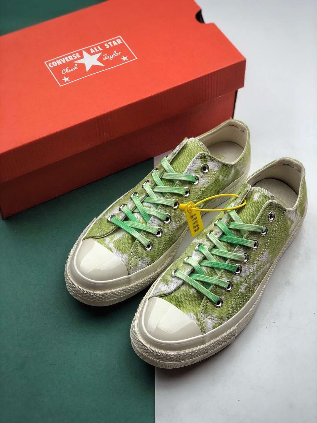 In summary, the Converse Chuck 70 Low Ox ‘Beach Dye – Light Aphid Green’ sneakers combine vibrant aesthetics with premium craftsmanship. Whether you’re a fan of the iconic Chuck 70 design or simply looking for a comfortable and stylish pair of sneakers, these shoes are a worthy addition to your collection. Get ready to make a statement with these eye-catching kicks!