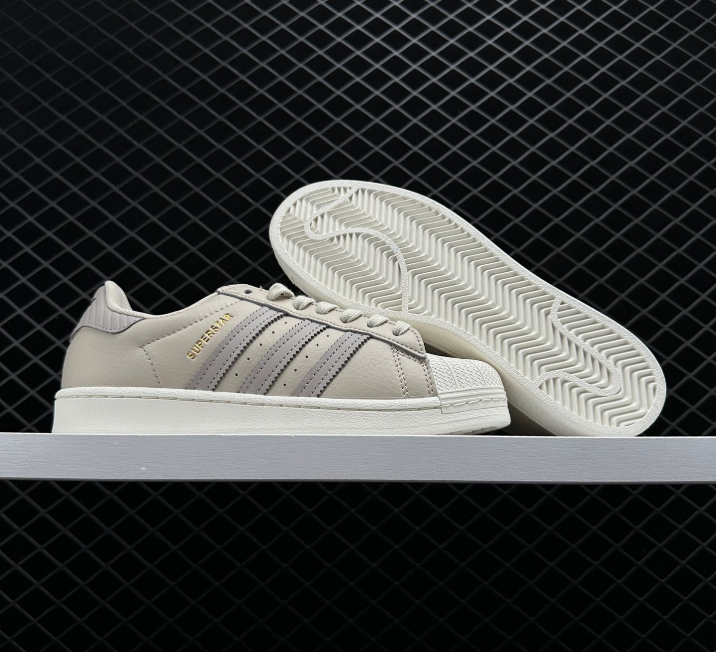 The Adidas Originals Superstar ‘Light Gray Dark Gray’ GW4437 features a premium leather upper that offers durability and a stylish look. The classic rubber shell toe design adds a retro touch to the shoe while providing additional protection. The iconic three-stripes branding on the sides showcases the Adidas heritage, ensuring authenticity and quality.