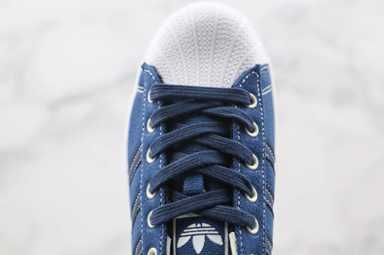 3. Cushioned Comfort: Equipped with a padded collar and insole, the Adidas Superstar ‘Collegiate Navy’ ensures all-day comfort. The cushioning provides a plush and supportive feel, making them suitable for long walks or extended periods of wear.