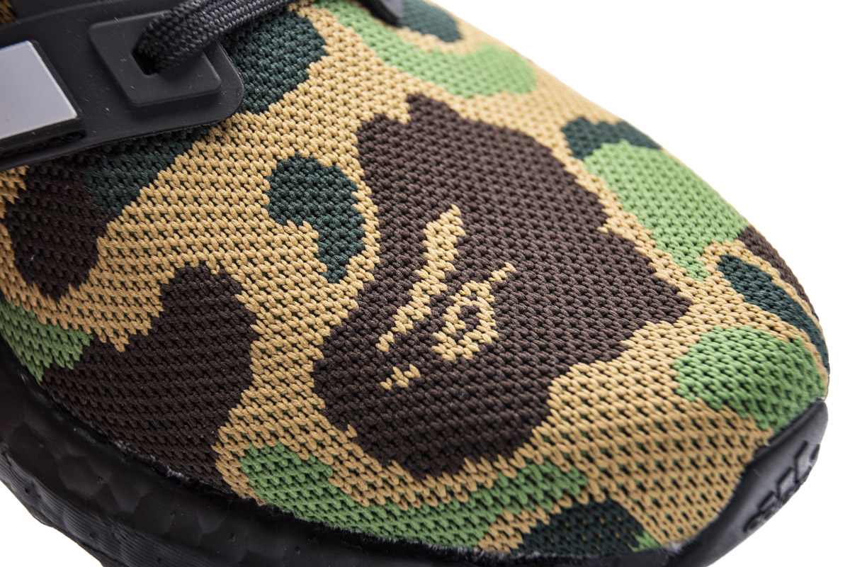 2. BAPE Camo Print: The ‘Green Camo’ design adds a touch of urban flair to this collaboration. The iconic BAPE camo print covers the Primeknit upper, lending a streetwear-inspired look to the shoe.