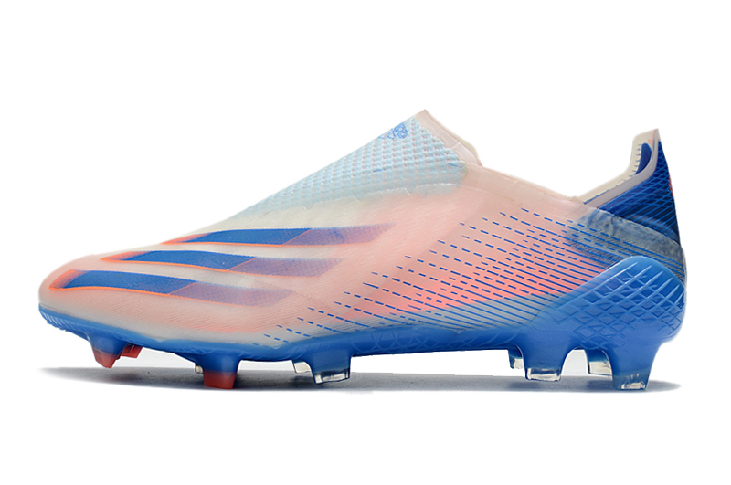 1. Speed-inspired Design: The Adidas X Ghosted+ Fg combines a striking pink and blue colorway with sleek lines, exuding confidence on the pitch. Stand out from the crowd and leave defenders in your dust with this visually stunning boot.