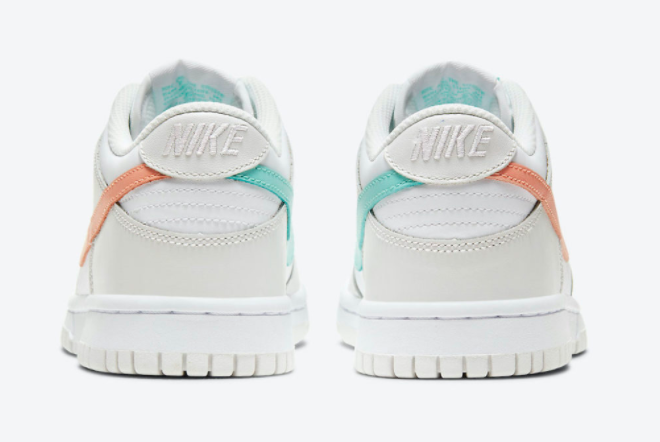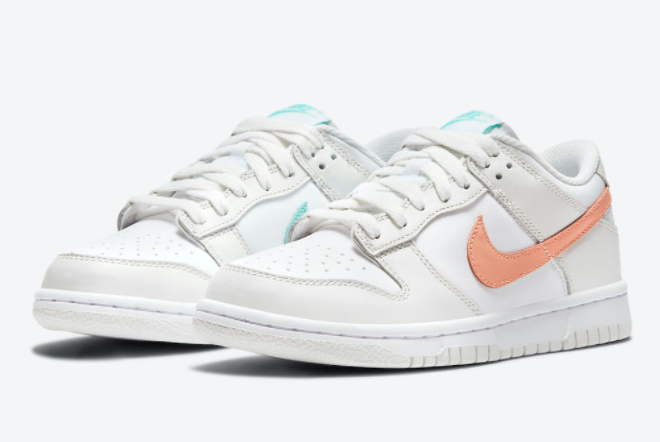 The Nike Dunk Low GS Mismatch Swoosh White/Bone/Peach/Aqua CW1590-101 combines bold colors and impeccable craftsmanship, making it a must-have sneaker for trendsetters. Whether you’re hitting the streets or stepping into the classroom, this shoe will effortlessly elevate your style game while keeping you comfortable throughout the day. So grab a pair and make a statement with every step.