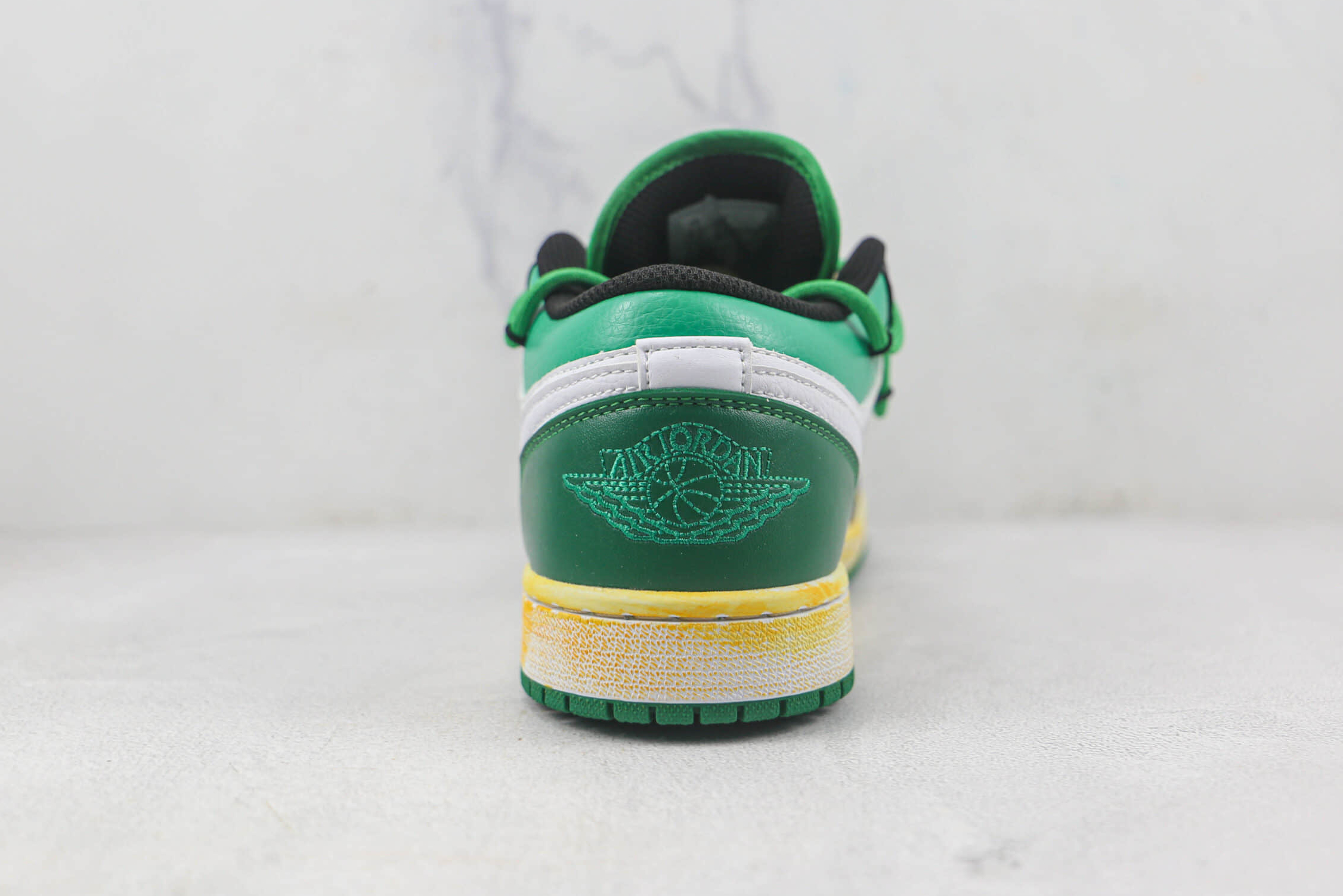 – Premium leather upper: The Air Jordan 1 Low ‘White Lucky Green’ boasts a high-quality leather upper that offers durability and a luxurious feel. This material ensures long-lasting performance, making it suitable for both on-court activities and everyday use.