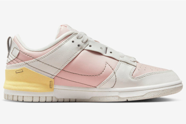 The Nike Dunk Low Disrupt 2 ‘Pink Oxford’ Pink/White-Pastel Yellow DV4024-001 is available in women’s sizes. The shoes have a low-profile design, allowing for easy movement and a contemporary look. They come with a lace-up closure system that enables a secure fit, while the padded collar and tongue provide added comfort. With its vibrant color palette and unique design, these sneakers are perfect for casual outings, sports activities, or making a fashion statement.