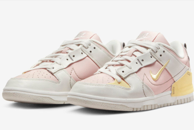 The Nike Dunk Low Disrupt 2 ‘Pink Oxford’ Pink/White-Pastel Yellow DV4024-001 is equipped with several features that enhance both comfort and style. The shoe’s upper is made of premium leather, providing durability and a sleek look. It features a padded collar and tongue for extra cushioning and support. The cushioned insole ensures all-day comfort, while the grippy rubber outsole offers excellent traction on various surfaces. The iconic Nike branding on the tongue and heel adds to the sneaker’s overall appeal.