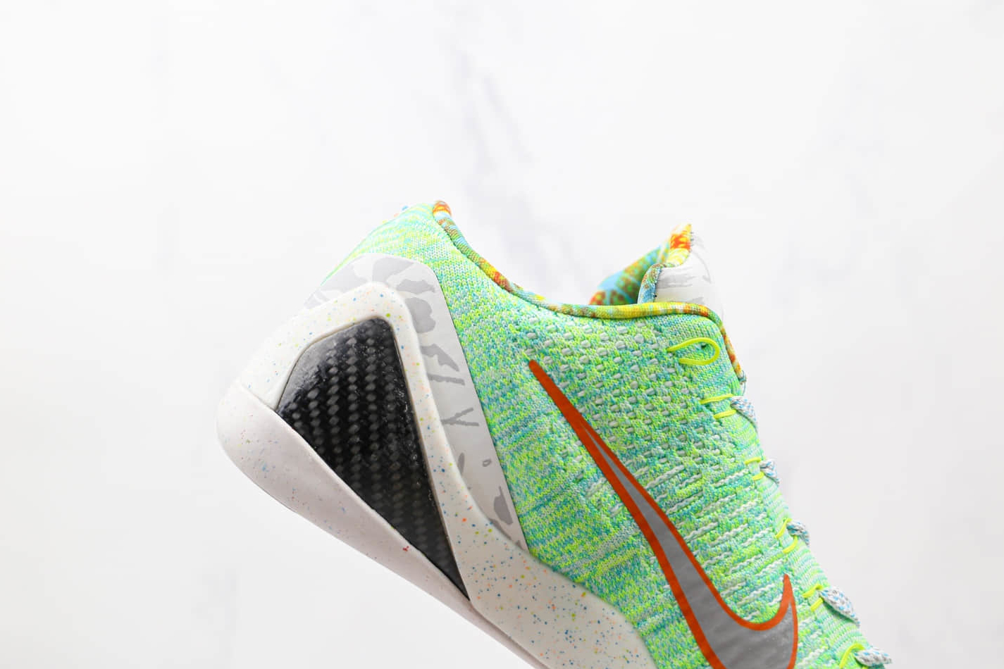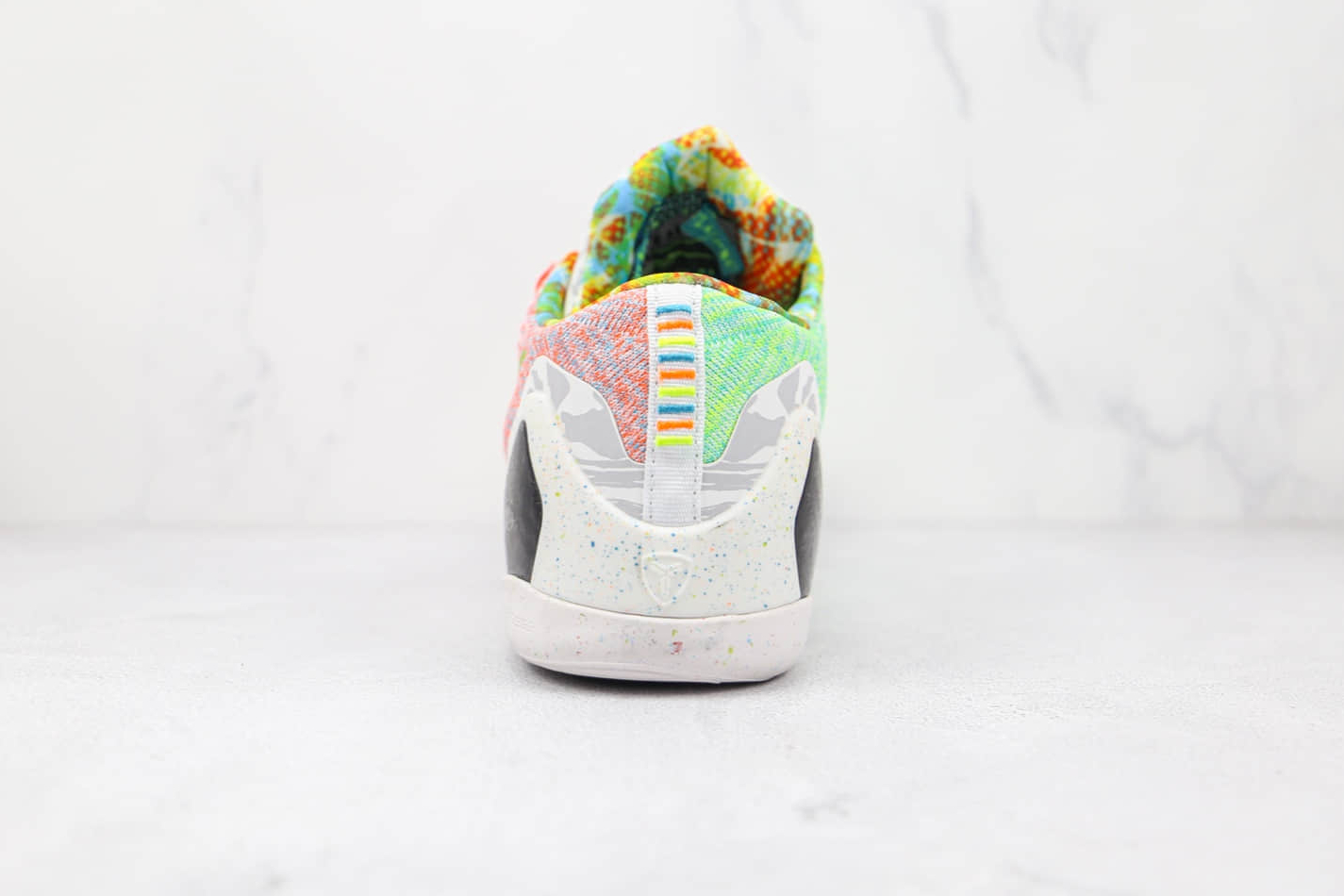 The ‘What The Kobe’ design is undoubtedly the highlight of this shoe. It combines multiple colors and patterns, creating a striking collage of aesthetics that truly celebrates the legacy of Kobe Bryant. The mismatched color schemes on each shoe further enhance its uniqueness and add an element of surprise to the design. This sneaker is a visual delight that stands out from the crowd.