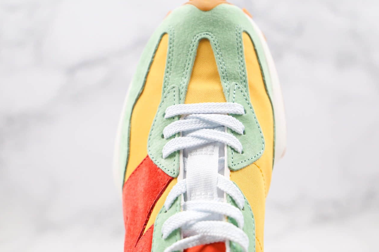 In summary, the New Balance x 327 ‘Yellow Green Orange’ MS327SZ1 is a must-have sneaker for those seeking a unique and stylish addition to their collection. Combining eye-catching design, premium materials, and superior comfort, these sneakers are the perfect choice for any fashion-forward individual. Take your style to the next level with this exceptional collaboration between Salehe Bembury and New Balance.