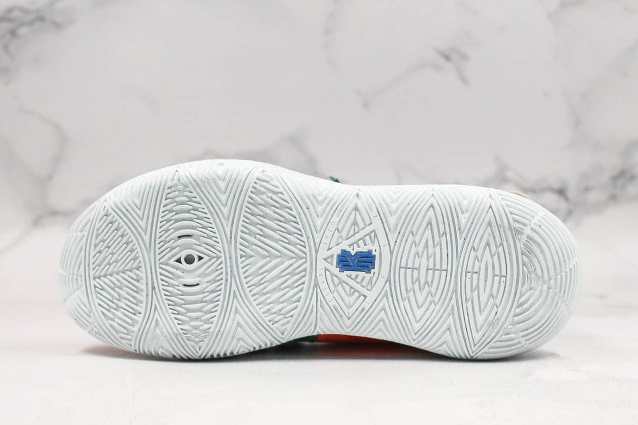 1. Vibrant and Playful Design: The Nike SpongeBob SquarePants x Kyrie 5 ‘Pineapple House’ features a vibrant color scheme that perfectly captures the spirit of the beloved cartoon. The yellow upper, reminiscent of SpongeBob’s porous body, is accentuated by green detailing, representing the pineapple leaves.