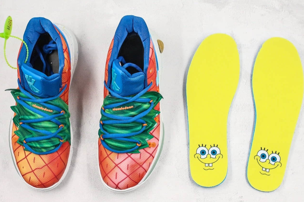 Get ready to step into the world of Bikini Bottom with the Nike SpongeBob SquarePants x Kyrie 5 ‘Pineapple House’ CJ6951-800. Inspired by the iconic pineapple-shaped home of everyone’s favorite sponge, these sneakers bring together the imaginative world of SpongeBob SquarePants and the performance-driven design of the Kyrie 5.