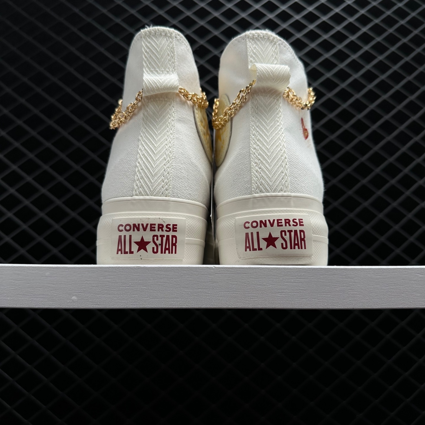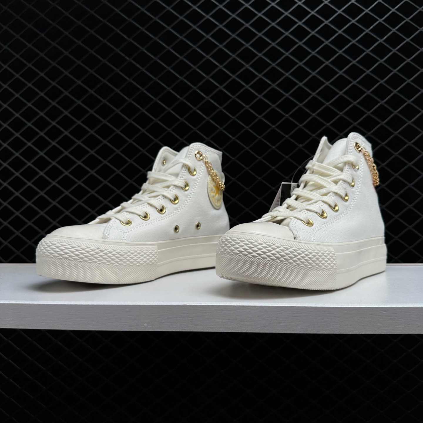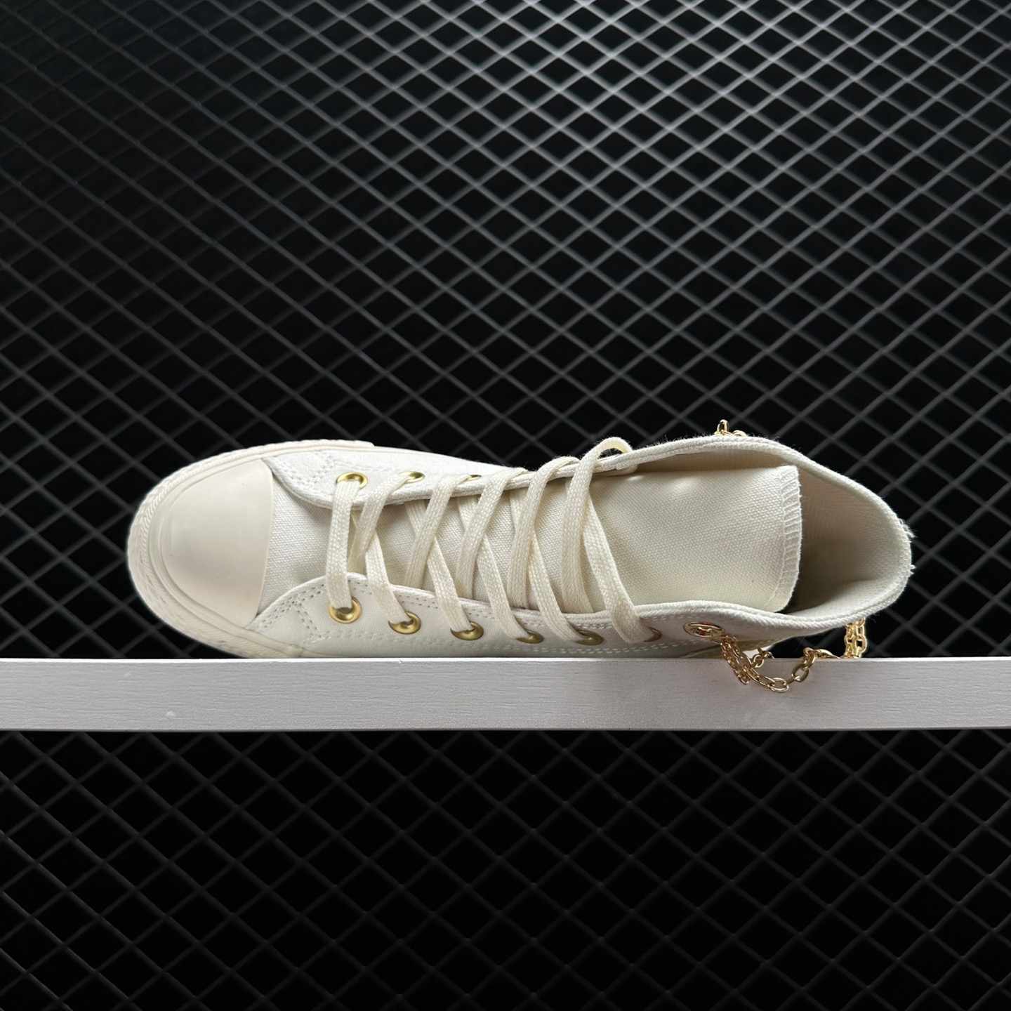 3. Gold Chain Detail: The standout feature of this shoe is the gold chain that wraps around the midsole. This unique embellishment adds a touch of luxury and sophistication to the classic Chuck Taylor design, making it a truly one-of-a-kind piece.
