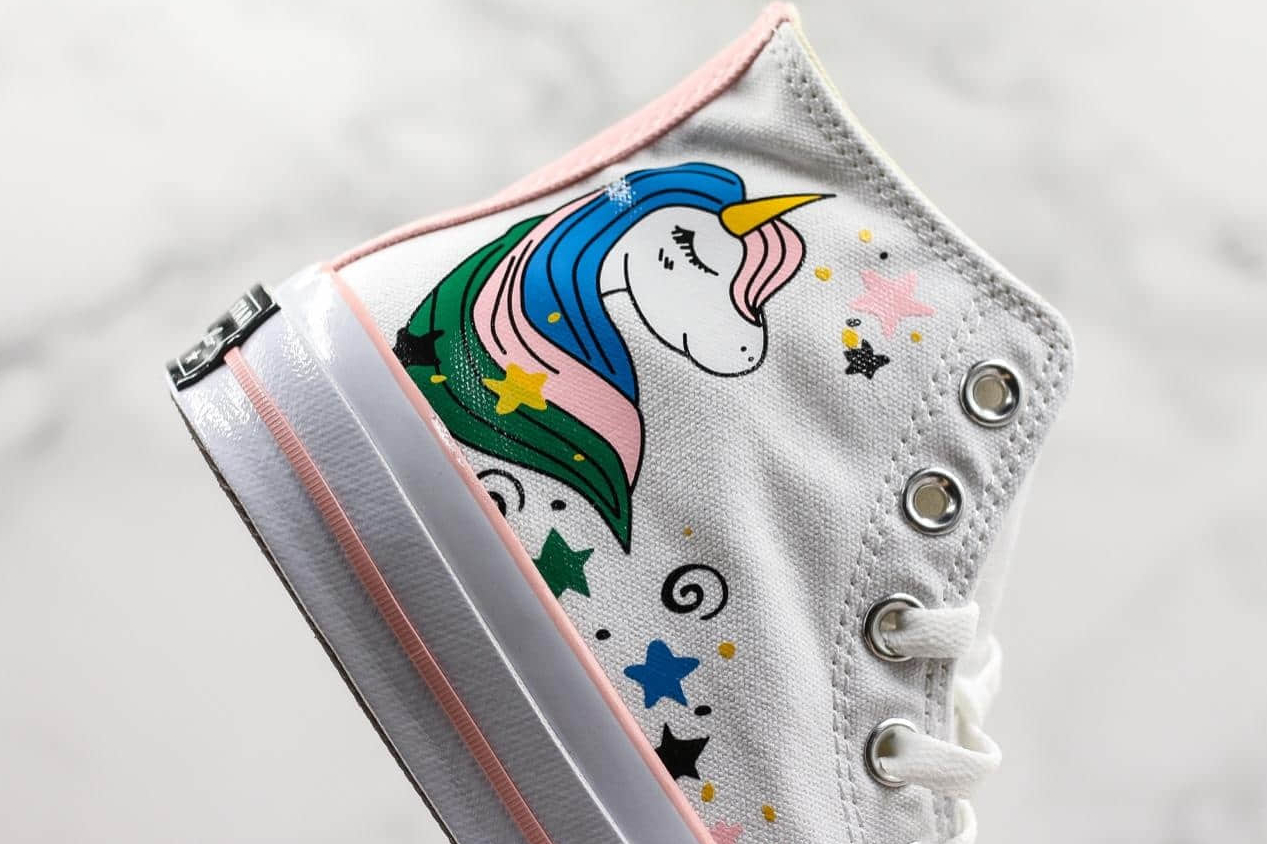 These Converse Chuck Taylor All Star Unicorns sneakers boast a plethora of features that make them both stylish and comfortable. The white canvas upper is adorned with vibrant unicorn graphics, showcasing their majestic beauty. The high-top design not only adds an edgy flair but also provides extra ankle support for all-day wear. The lace-up closure ensures a secure fit, while the cushioned footbed offers unparalleled comfort, making these sneakers perfect for long walks or casual outings.