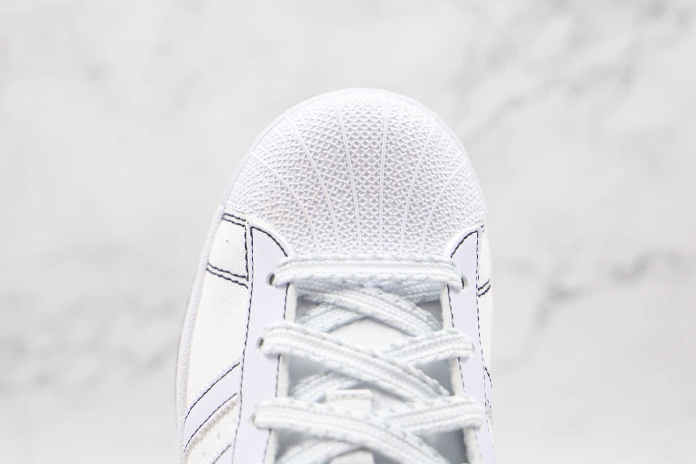 3. Core black details on the iconic shell toe and three stripes for a bold contrast.