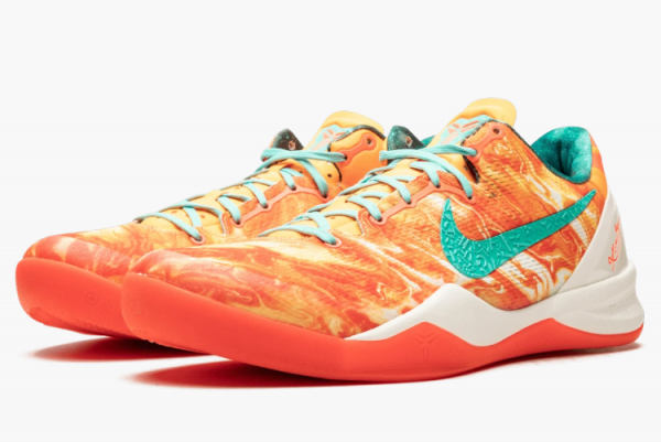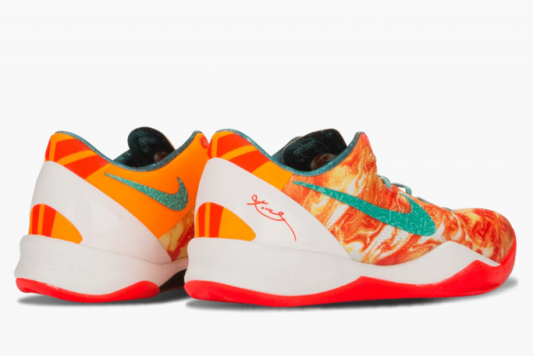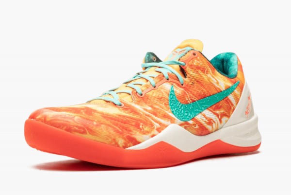 The Nike Kobe 8 System All Star Extraterrestrial is available in a vibrant color scheme of orange, black, and green. Its design is inspired by extraterrestrial elements, making it a true standout on and off the court.
