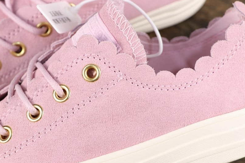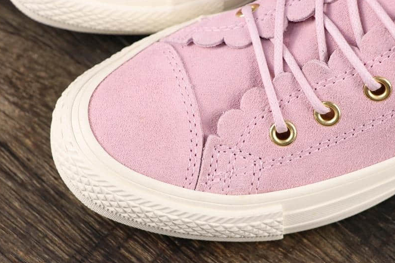 1. Frilly Details: The Chuck Taylor All Star Low ‘Frilly Thrills Pink Foam’ is adorned with delicate frills, adding a touch of femininity and uniqueness to the classic Chuck Taylor design. These frills create a playful and eye-catching element, making this shoe stand out from the crowd.