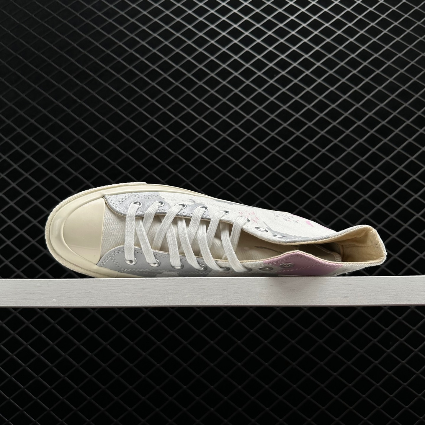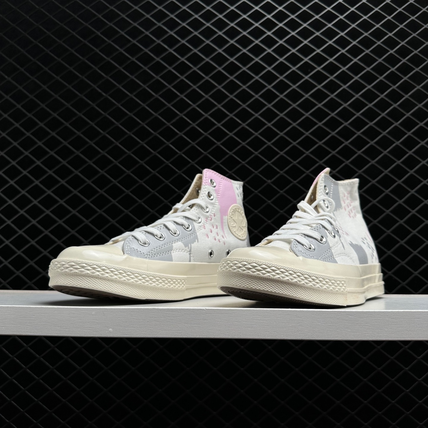 The Converse Chuck Taylor All Star 1970s High Top ‘White Gray Pink’ A04214C showcases a unique blend of classic aesthetics and contemporary flair. Featuring a durable canvas upper, these sneakers offer both comfort and longevity. The timeless high-top silhouette adds a touch of retro charm, making a fashion statement wherever you go.