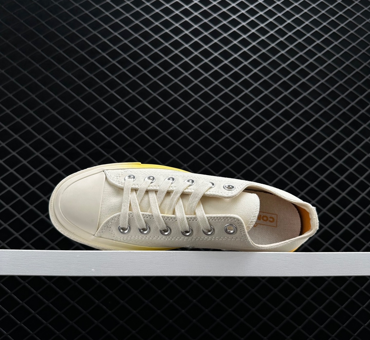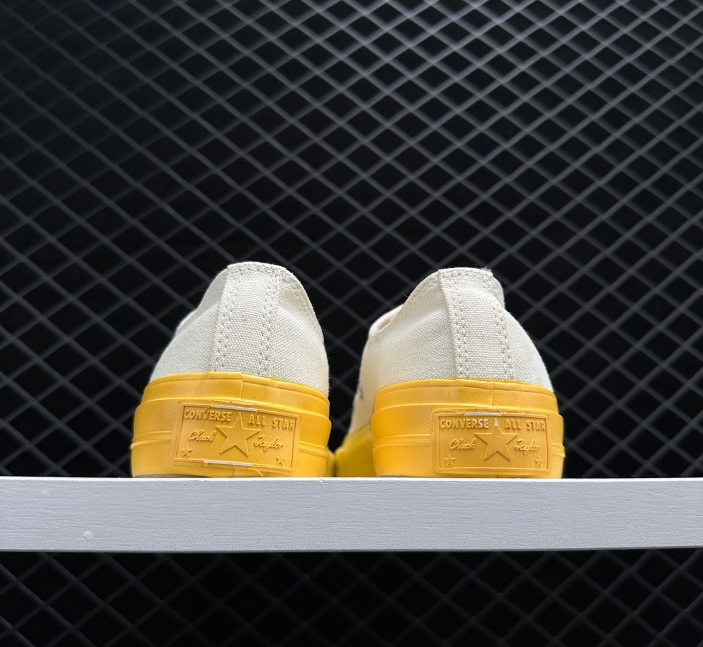 Crafted with premium materials, these Chuck Taylor All Stars are built to last. The ‘Creamwhite Yellow’ colorway adds a touch of vintage charm, making them perfect for effortlessly elevating your casual outfits. Their low-top silhouette offers a sleek and stylish look that can be dressed up or down.