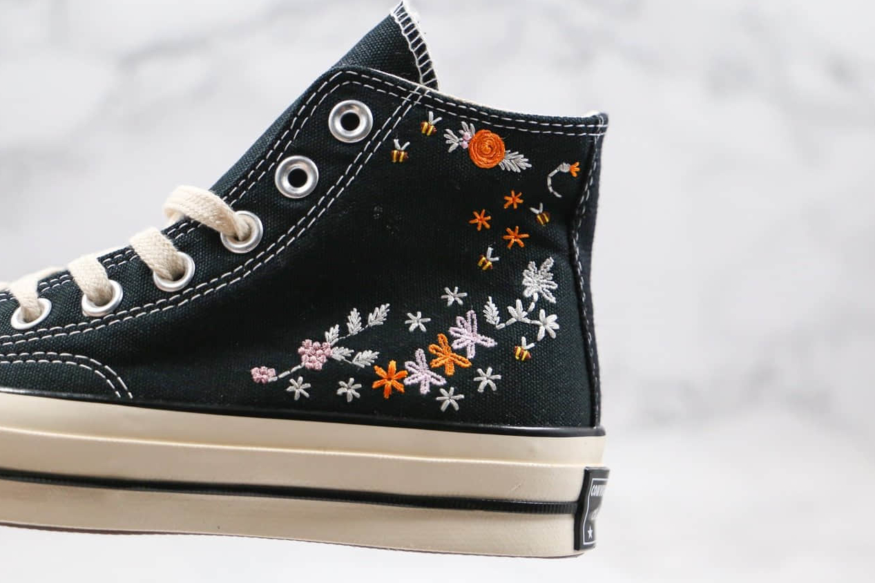 The Chuck Taylor 70s Embroidery High Tops boast a range of features that set them apart from your average sneakers. First and foremost, the shoe’s high-top design provides ankle support and protection, making them ideal for sports activities or casual wear. The black canvas upper is not only durable but also easily cleansable, ensuring the shoes stay looking fresh and new for longer periods.